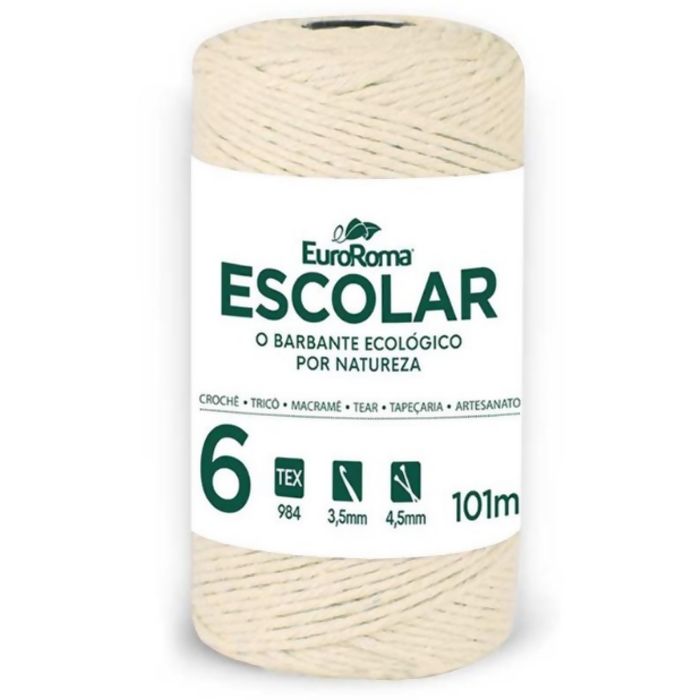 O barbante EuroRoma Escolar Cru e desenvolvido atraves de materia-prima reciclada, voltado para o artesanato e uso como material escolar. Produzido de forma sustentavel, este barbante apresenta qualidade e beleza. Disponivel em 100g, o barbante EuroRoma Escolar Cru tem como principal caracteristica a sua versatilidade e e muito utilizado como um item do kit escolar, alem de ser uma otima opcao para aulas de artesanato e pequenos acabamentos.