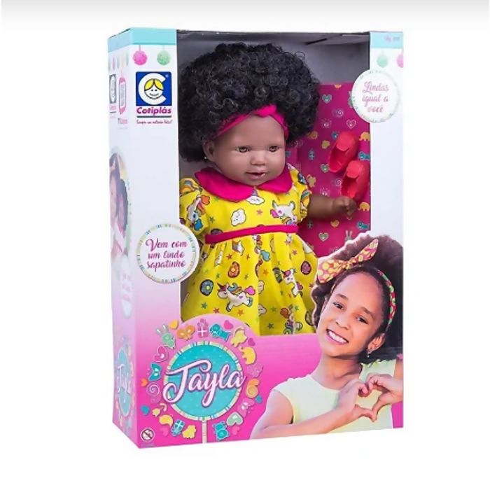 As meninas vão se encantar com essa linda Boneca Tayla, que é super macia e perfumada. Contém 2 modelos (vendido separadamente) vem com um lindo par de sapatinhos que combinam com seu vestidinhos azul ou amarelo. (envio aleatório)
