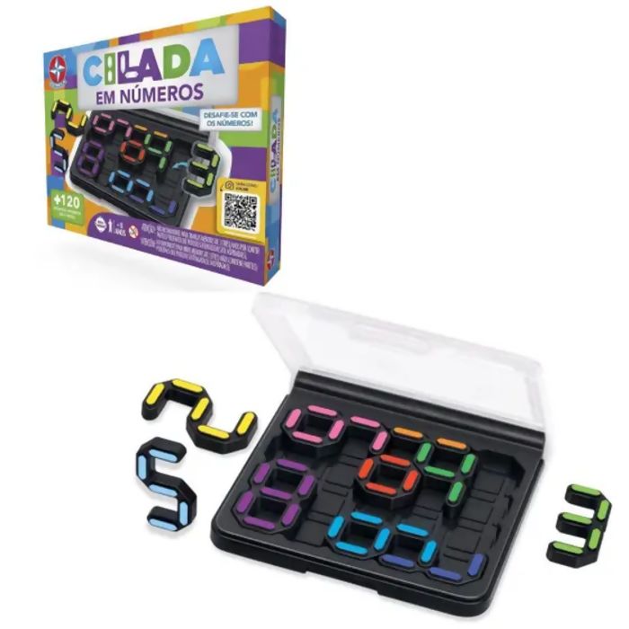 O jogo de estratégia Cilada Números da Brinquedos Estrela é indicado para crianças a partir de 6 anos. Composto por 11 peças (9 peças de números (de 1 a 9), 1 tabuleiro com tampa plástica e 1 livro com desafios), desenvolve a estratégia e proporciona entretenimento. Uma nova versão do clássico Cilada, agora com números. São mais de 120 desafios divididos em 4 níveis, para testar seu raciocínio e se divertir. Escolha o nível de dificuldade que deseja, o quebra-cabeça que quer solucionar e monte as peças iniciais conforme mostra a imagem do desafio selecionado. Siga as instruções e desafia-se.