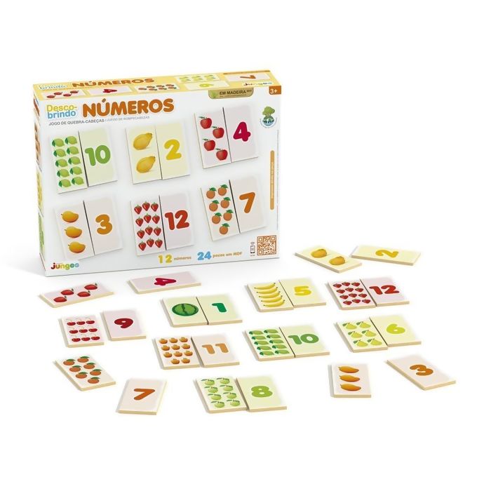 Jogo Descobrindo Números da Junges com 24 peças em madeira de reflorestamento (mdf), que formam 12 cenas com números do 1 ao 12. Impressão direto na madeira com acabamento de alta qualidade, durabilidade e resistência.