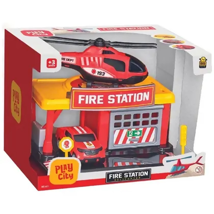 Este produto é indicado para crianças a partir de 3 anos. Conteúdo da embalagem: 1 sede do Corpo de Bombeiros, 1 carro, 1 helicóptero