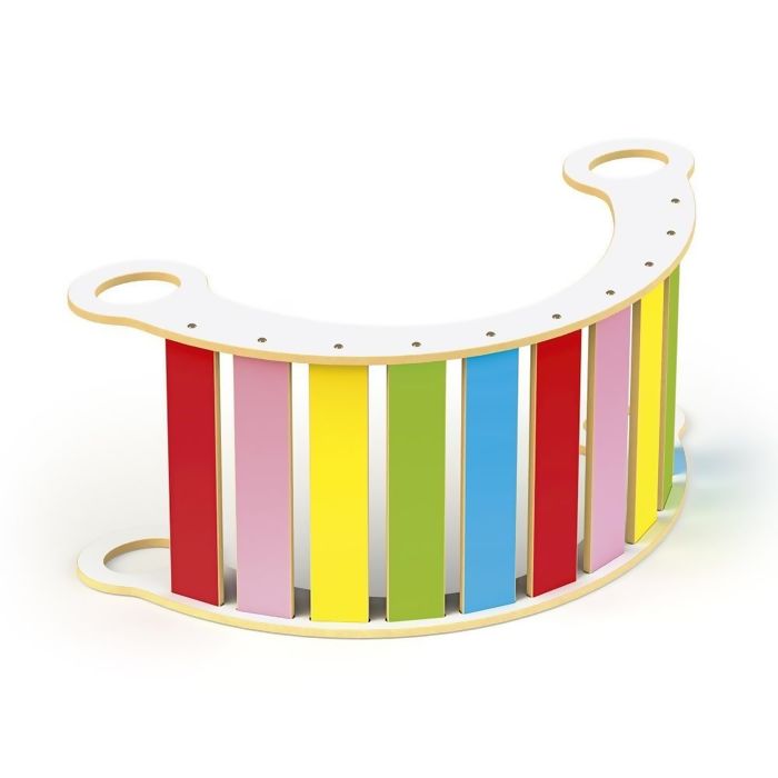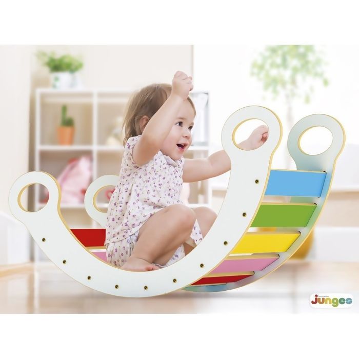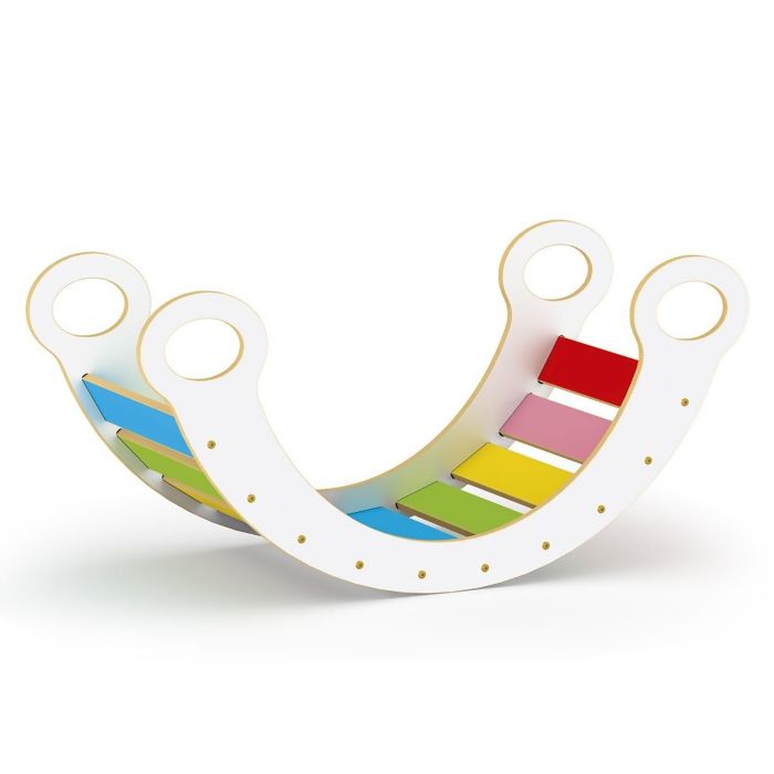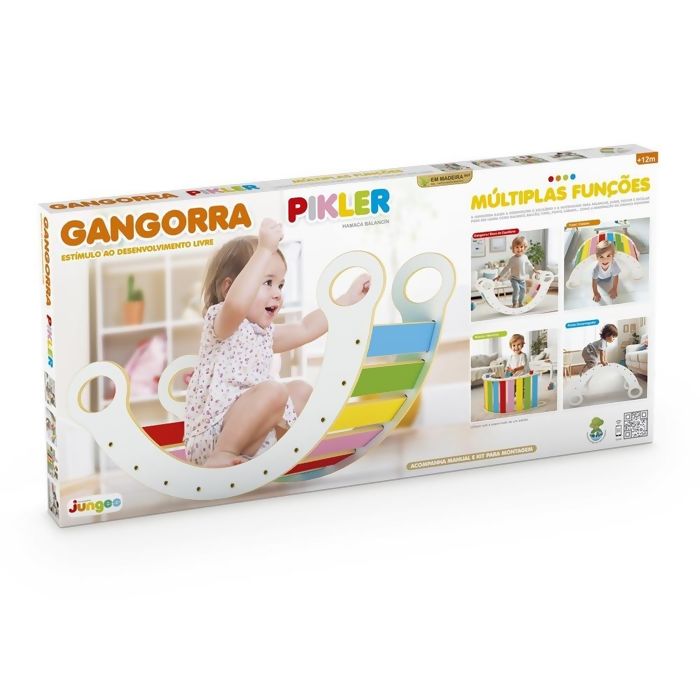 A Gangorra Infantil, inspirada na abordagem Pikler é um brinquedo que estimula a criança ao livre brincar. Além disso, contribui com o desenvolvimento da motricidade e do equilíbrio, permitindo que a criança balance, suba, ou desça. Permite, também, que a criança utilize da sua imaginação tornando-a um balanço, ponte, túnel, mesa, casinha ou que a criança criar.