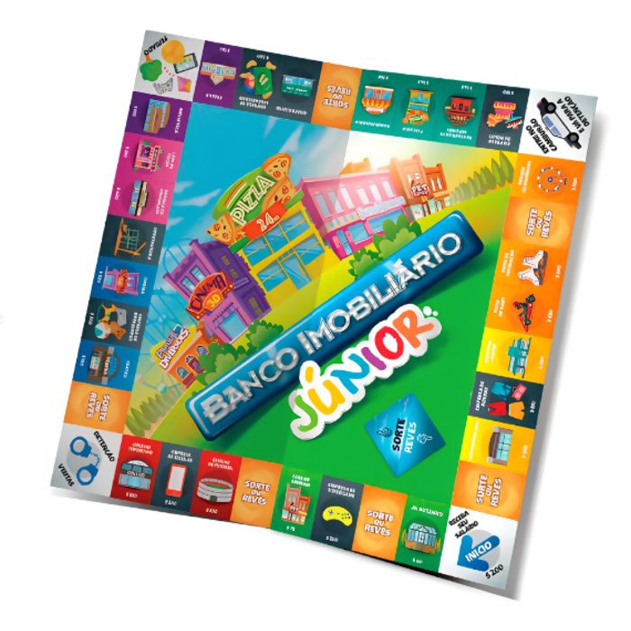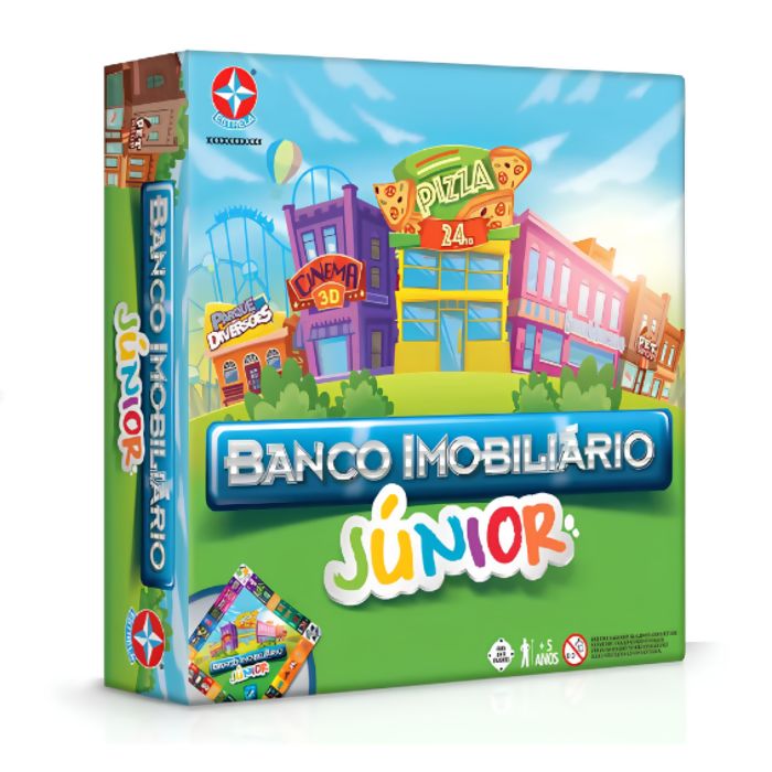 A versão júnior do Banco Imobiliário conta com uma mecânica e valores simplificados, além de imóveis que trazem temas mais amigáveis às crianças, como sorveteria, loja de doces e muito outros. As crianças vão comprar e vender propriedades, construir casas e aprender a controlar seu dinheiro.