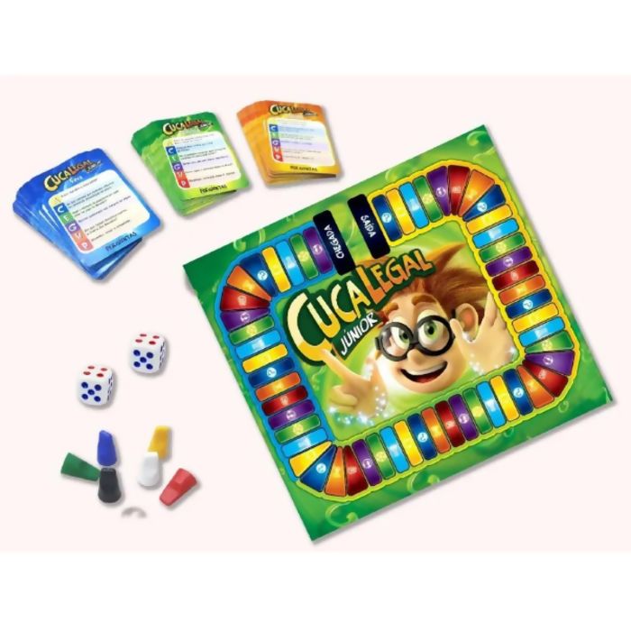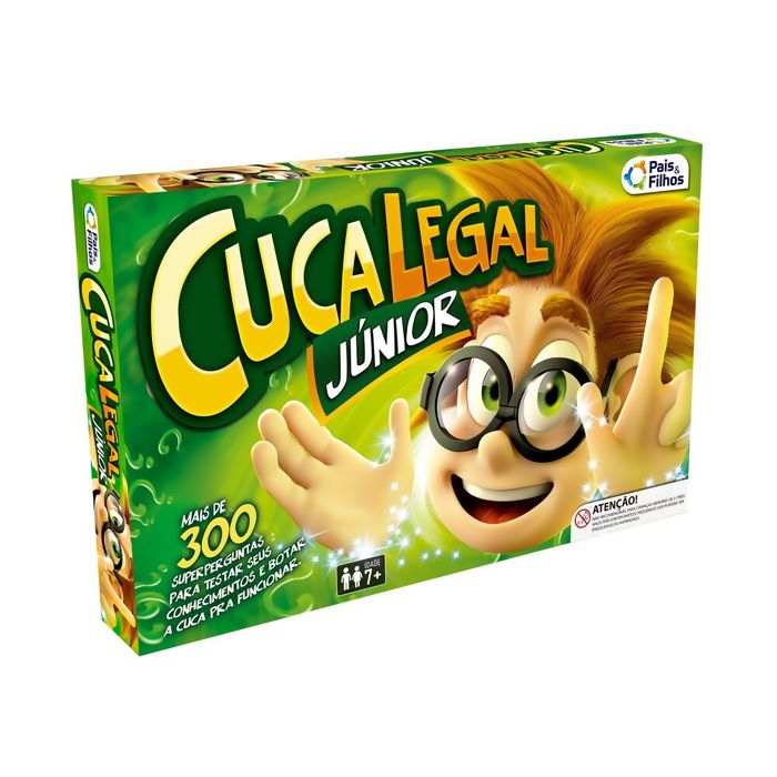Jogo Cuca Legal Junior da Pais & Filhos é ideal para crianças acima de 7 anos. São mais de 300 perguntas para testar seus conhecimentos e botar a cuca para funcionar. Neste jogo você terá que mostrar seus conhecimentos sobre vários assuntos. Para vencer você deverá responder questões sobre vários temas.