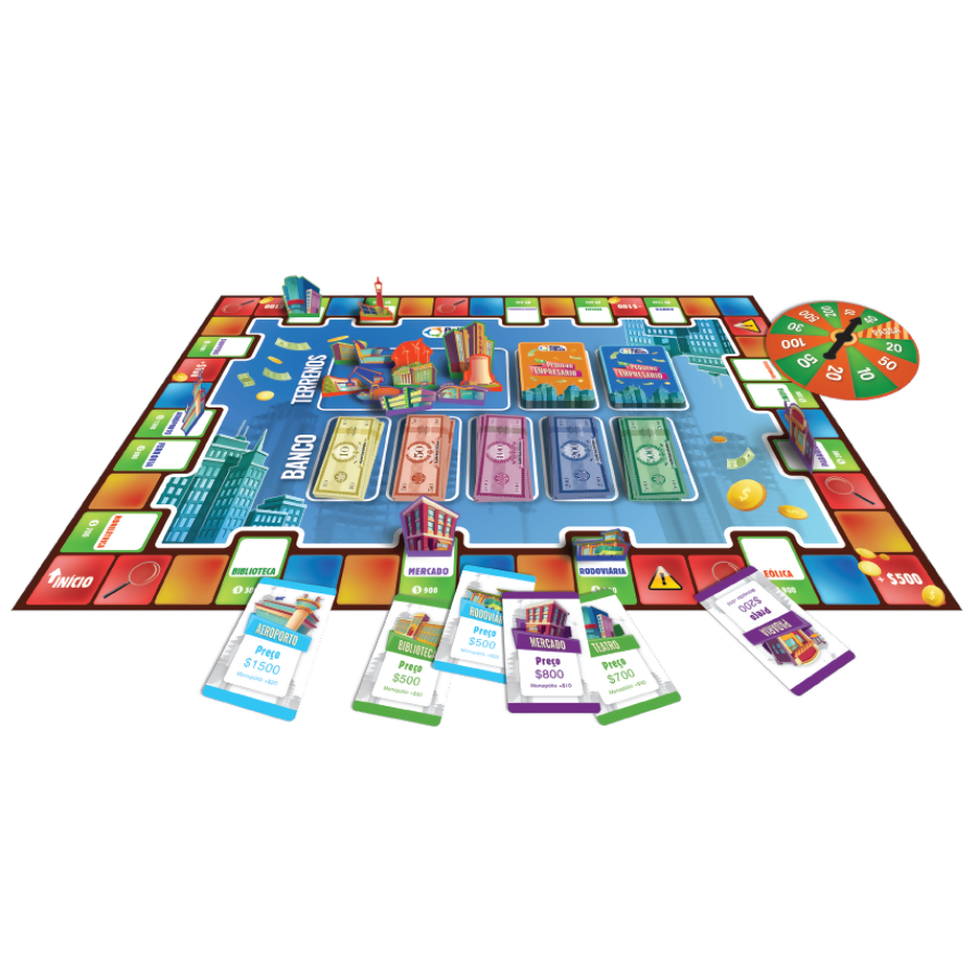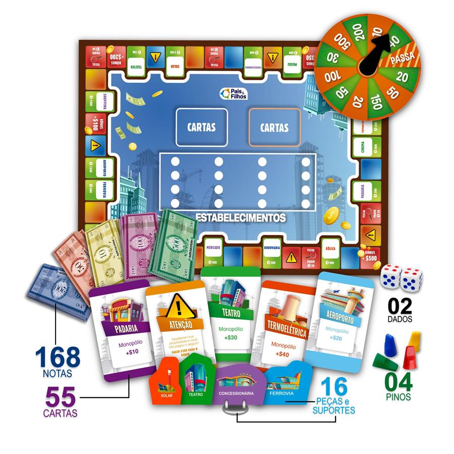 O clássico jogo traz o dinamismo do mundo dos negócios direto para sua casa, reúna amigos e família para jogar, torne-se um grande milionário e administre suas posses para que seus oponentes não o levem à falência. Como Jogar: º O primeiro jogador lança os 2 dados ao mesmo tempo para saber quantas casas irá andar.