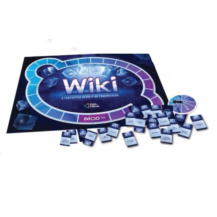 Idade: a partir de 9 anos. Jogo de tabuleiro Wiki Pais e Filhos, um jogo de desenhos e mímicas para divertir toda a família. Sorteia uma carta e passe a informação para seu parceiro através da mímica ou desenho, de acordo com a roleta. Vence aquele que se expressar melhor e mais rápido.