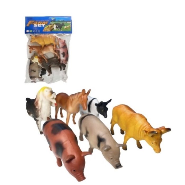 O kit contém 6 animais.Porco,vaca,cachorro,cavalo,boi