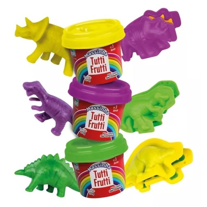 Garantia Kit Massinha Tutti Frutti Modelar com Moldes Ovo Dinossauro Amigo