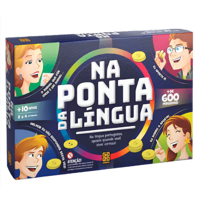 Simples, divertido e educativo, o jogo de tabuleiro Na Ponta da Língua desafia os jogadores a responderem mais de 750 perguntas sobre gramática, verbos e ortografia.