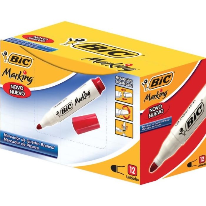 Pincel Para Quadro Branco/Lousa de Vidro Bic Marking Recarregavel Vermelho Caixa C/12 Un