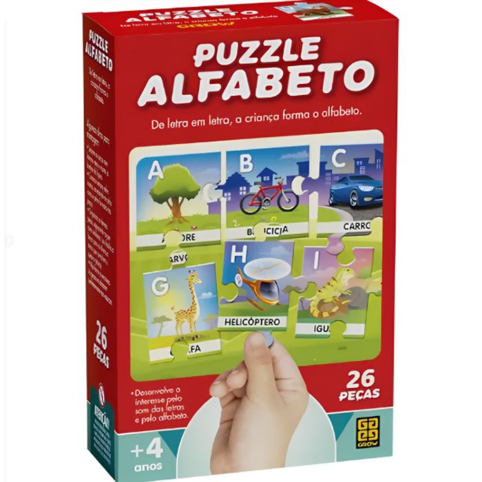 São 26 peças, para você encaixar uma a uma até formar todo o alfabeto do A ao Z. Mais que um passatempo divertido, os quebra-cabeças desenvolvem o raciocínio, relaxam e se transformam num autêntico hobby.