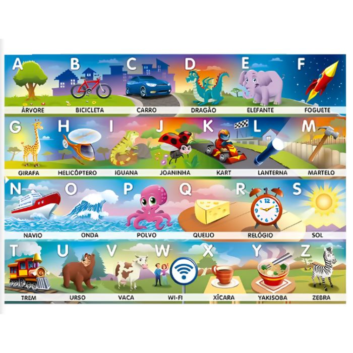 O Puzzle Alfabeto é único em sua categoria! Só ele traz ilustrações em um cenário contínuo que, além de facilitar a montagem do quebra-cabeça, torna-lo lúdico e envolvente