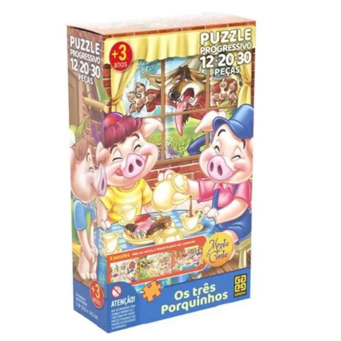 Descrição Puzzle Progressivo Os Três Porquinhos 12/20/30 Grow