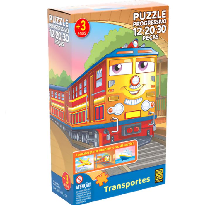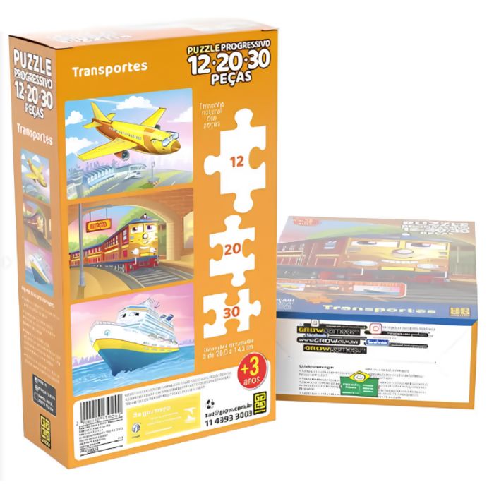 Descrição Puzzle Progressivo Transportes 12/20/30 Grow