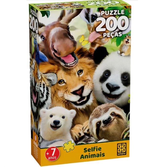 Descrição Puzzle Selfie dos Bichos 200 Peças Grow