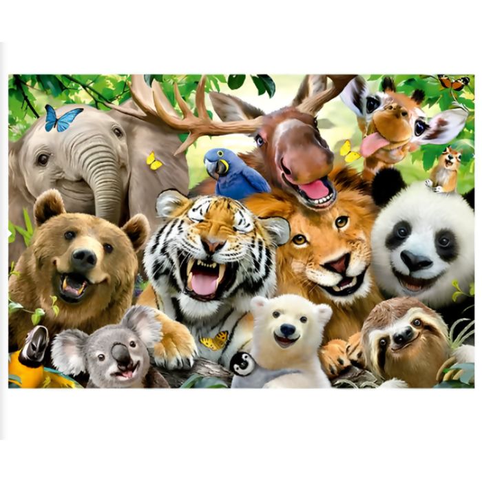 Composto por 200 peças, esse emocionante quebra-cabeça apresenta uma cena inédita - um grupo de animais, incluindo leão, tigre, urso, panda, elefante, e muitos outros... todos juntos, posando para uma selfie e proporcionando momentos de alegria enquanto você monta essa imagem encantadora!