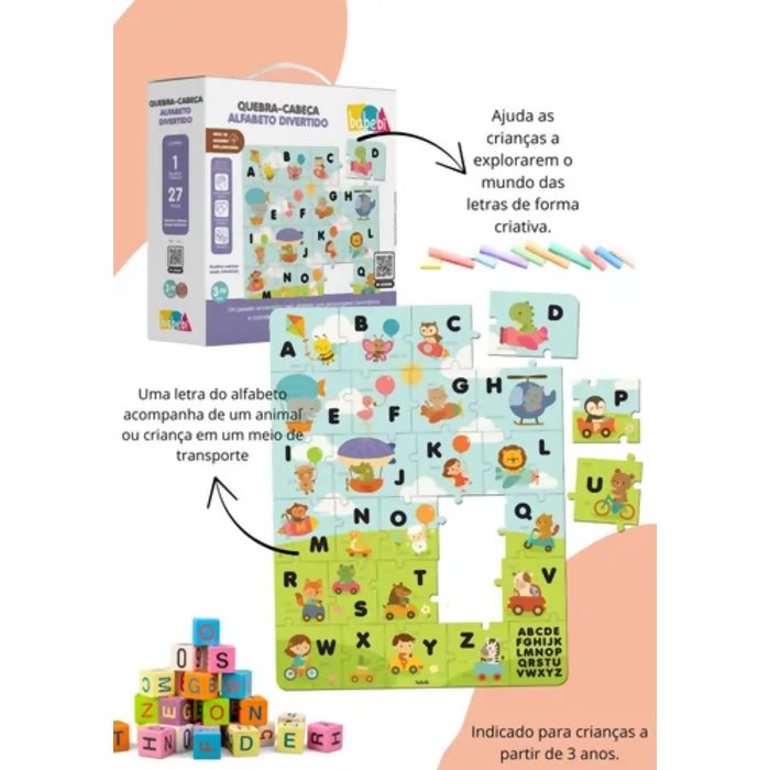 Descrição Quebra Cabeça Alfabeto Divertido Babebi