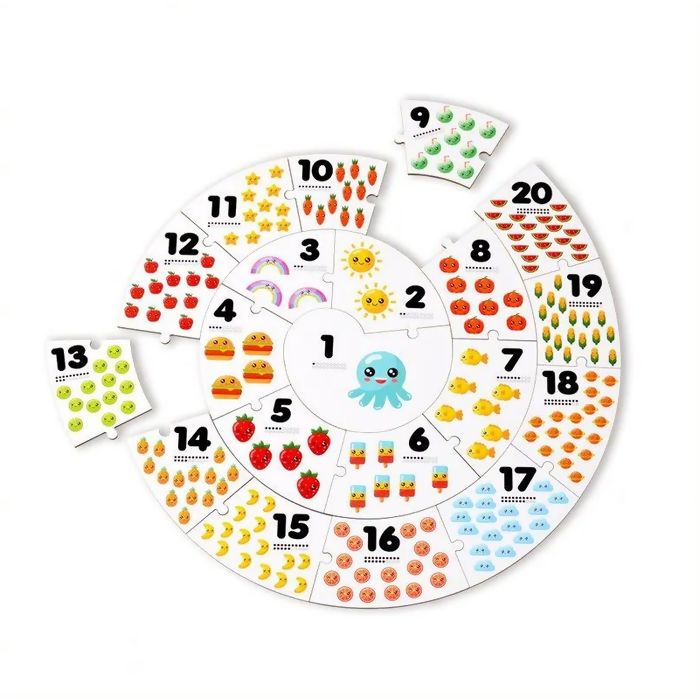 Divertido Quebra-Cabeça Circular com figuras coloridas e atrativas para os pequenos aprenderem a contar brincando.
