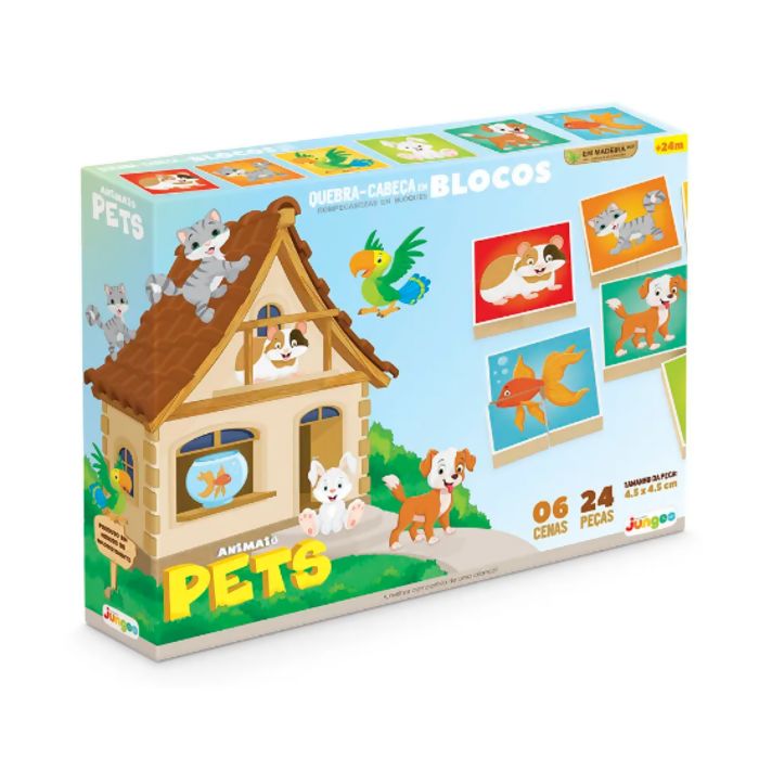 Descrição Quebra Cabeça em Blocos Animais Pets Junges