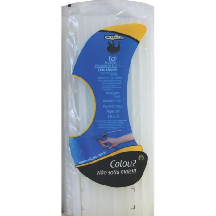 É um adesivo termoplástico de uso geral composto de E.V.A E RESINA VEGETAL ECOLOGICAMENTE CORRETA . Sua aplicação é para fechamento de caixas, fio de telefone, artesanatos, calçados etc. É importante observar a temperatura de aplicação, pois se aplic do à temperatura baixa poderá comprometer a aderência. É recomendado estocar em locais arejados e livres do sol com temperaturas entre 10ºC e 30ºC.
