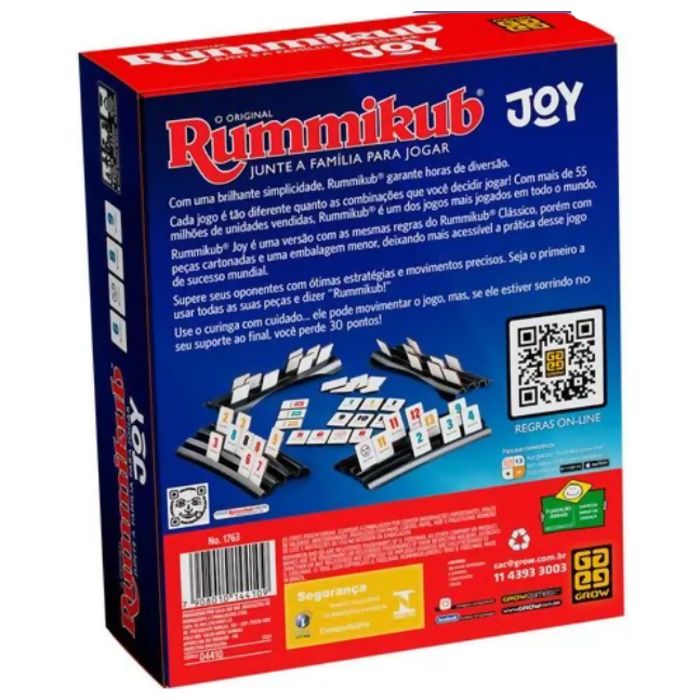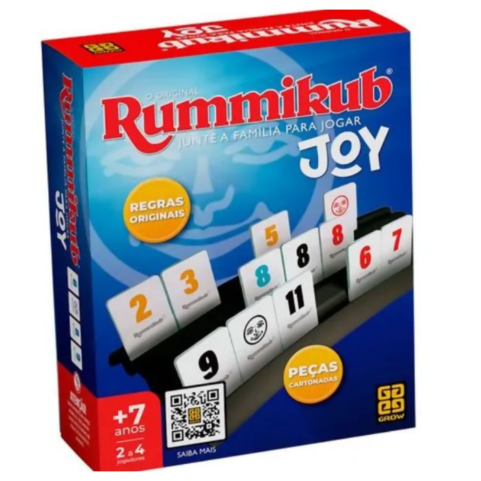 Rummikub Joy é uma versão com as mesmas regras do Rummikub Clássico, porém com peças cartonadas e uma embalagem menor, deixando mais acessível a prática desse jogo de sucesso mundial.