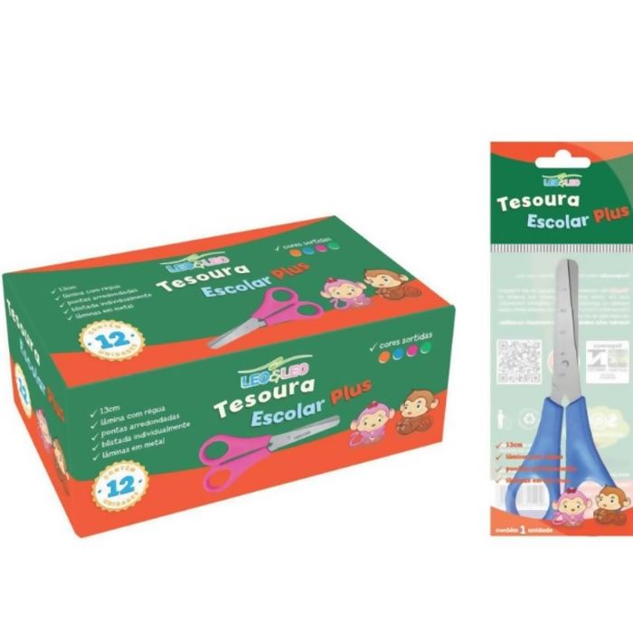 Descrição Tesoura Escolar Sortidas Léo & Léo 13cm