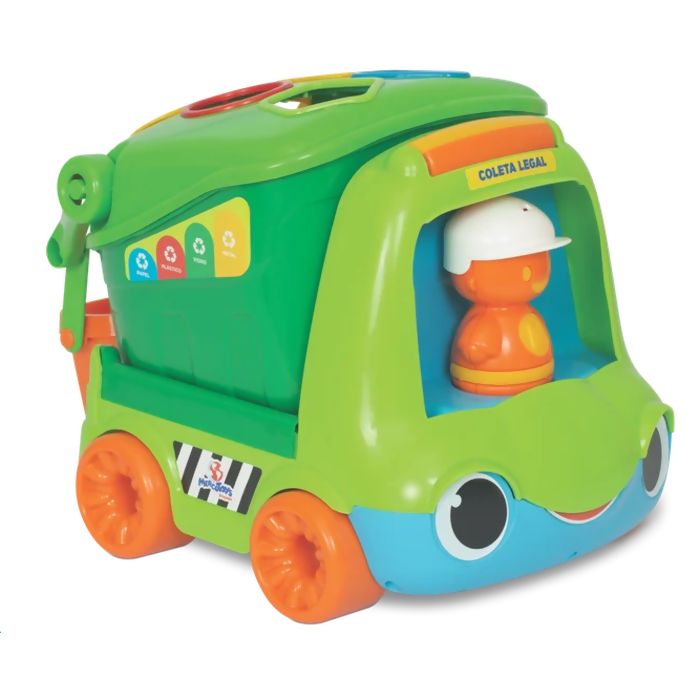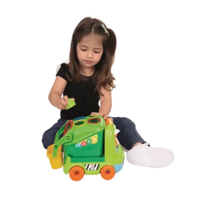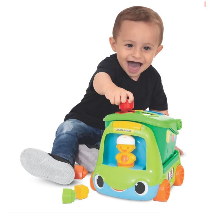 • Caçamba basculante: desenvolva a coordenação motora fina da criança com a caçamba que levanta e abaixa, simulando o descarte correto do lixo;