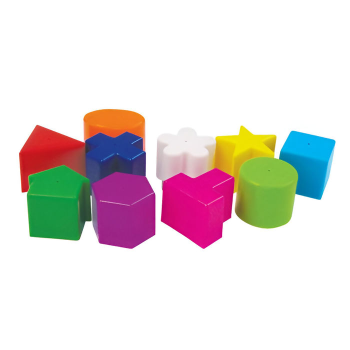 Acompanha 10 peças com formas geométricas para encaixar e aros para empilhar.